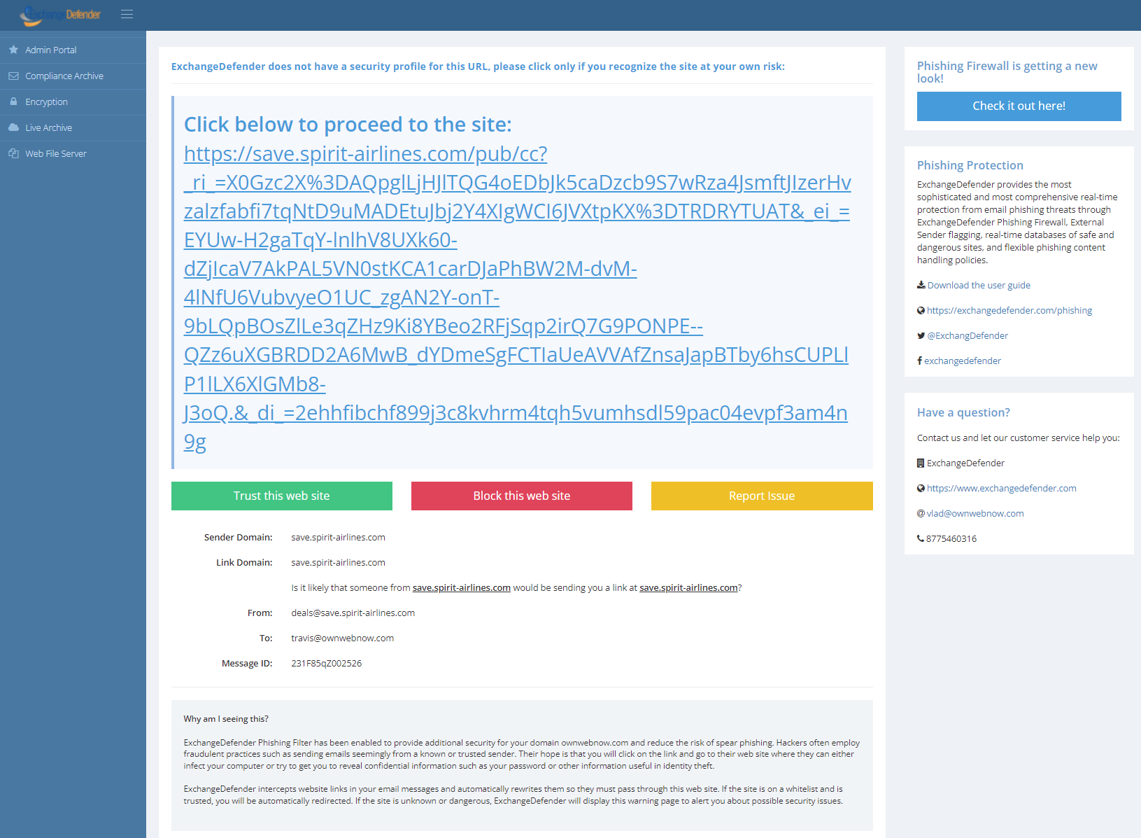 Introducing ExchangeDefender Phishing Firewall Beta (SEE PICS)